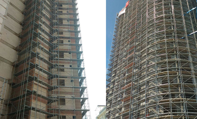 H tipi iskele sistemi duvar yapımında iç ve dış sıva yapımında,cephe boyama ve izalasyonunda cephe giydirmede tersanelerde bakım ve onarım rahat ve güvenli bir iş üretimi sağlamak üzere kullanılmaktadır.